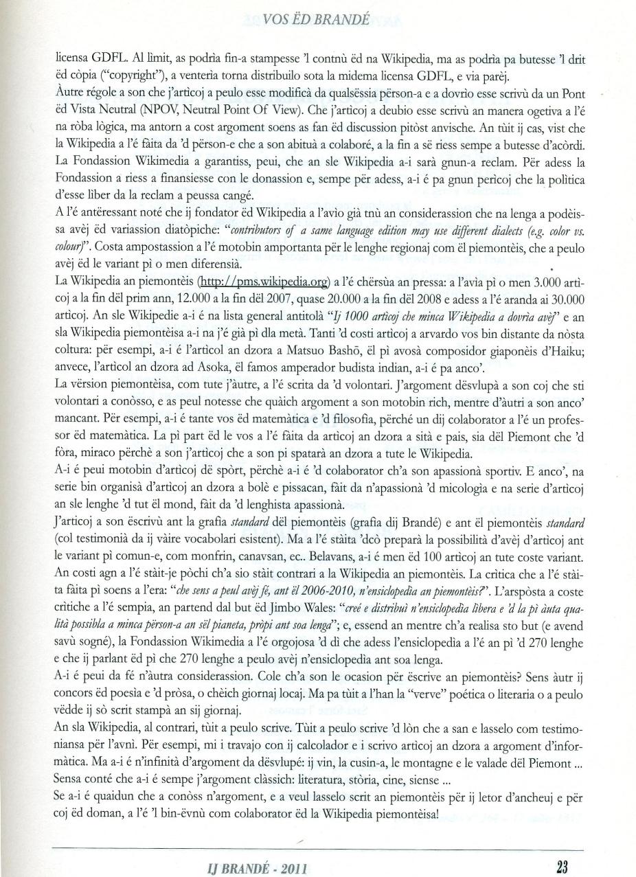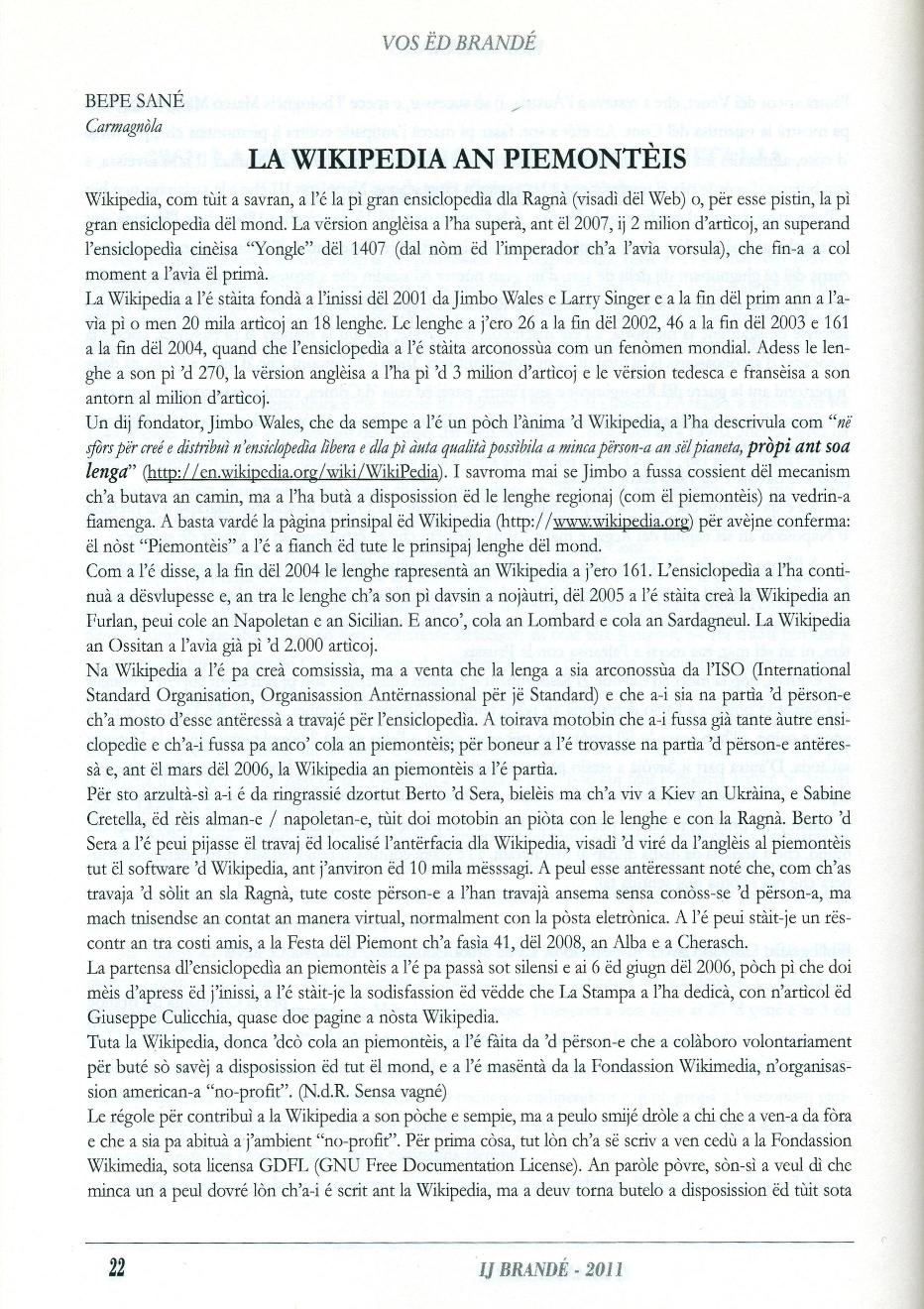 che a-i fussa gią tante ąutre ensiclopedģe e ch'a-i fussa pa anco' cola an piemontčis; pėr boneur